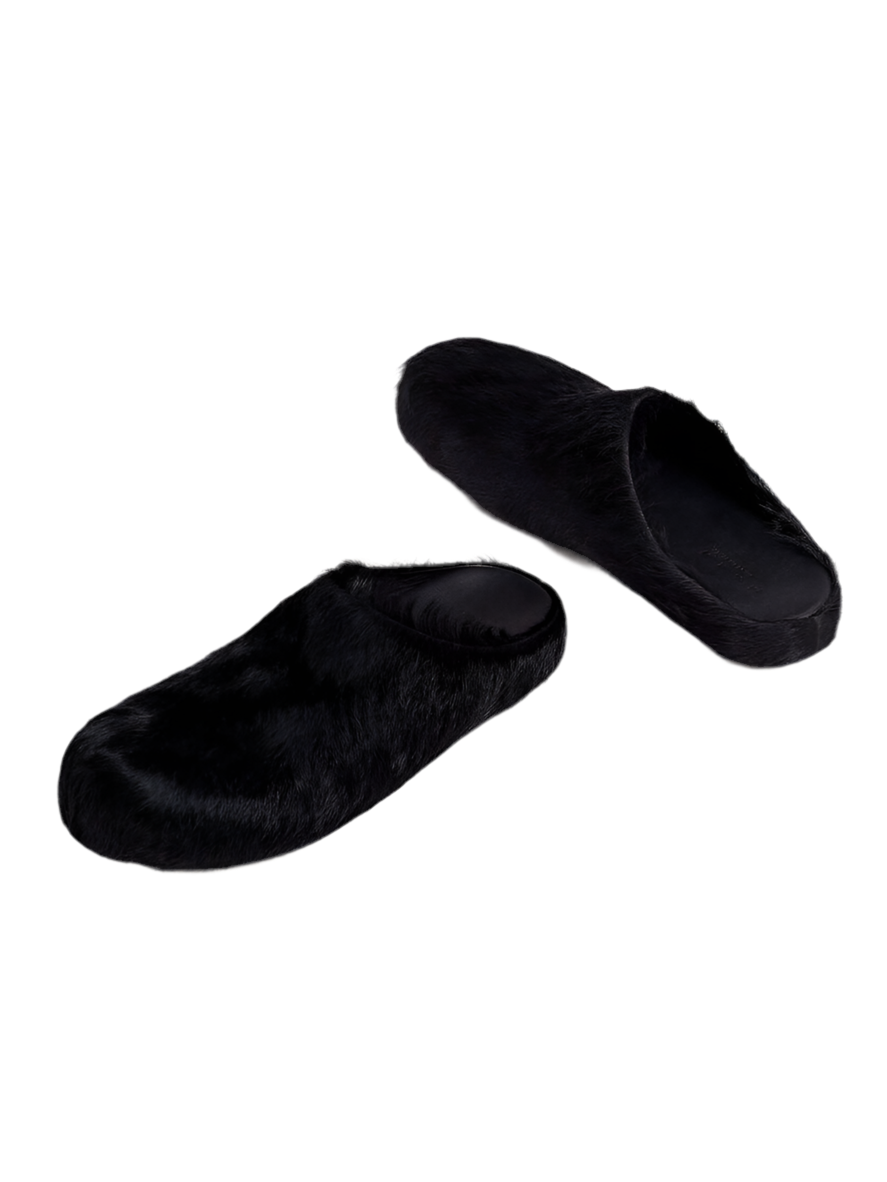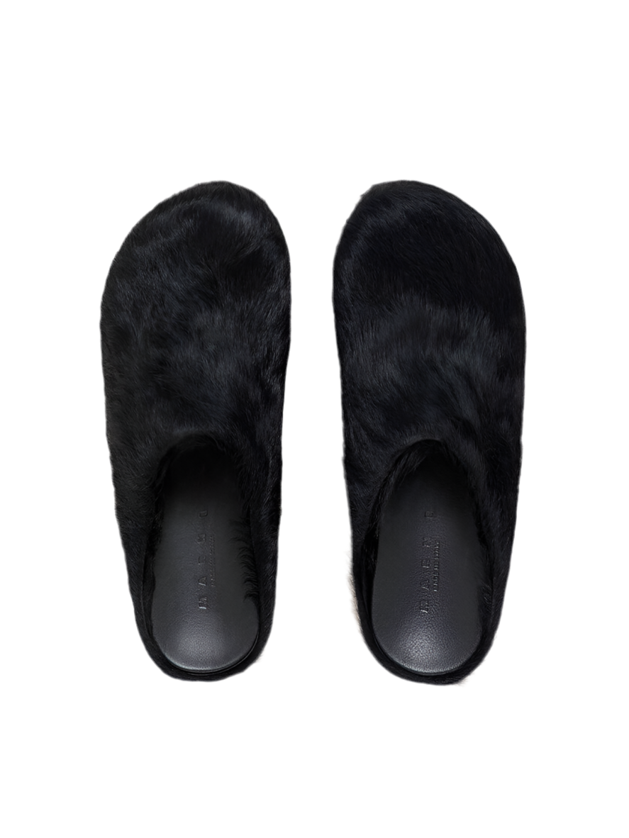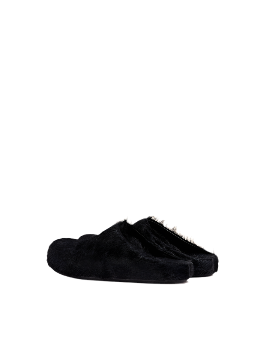 Fussbett Sabot Clog in Black Long Haircalfskin