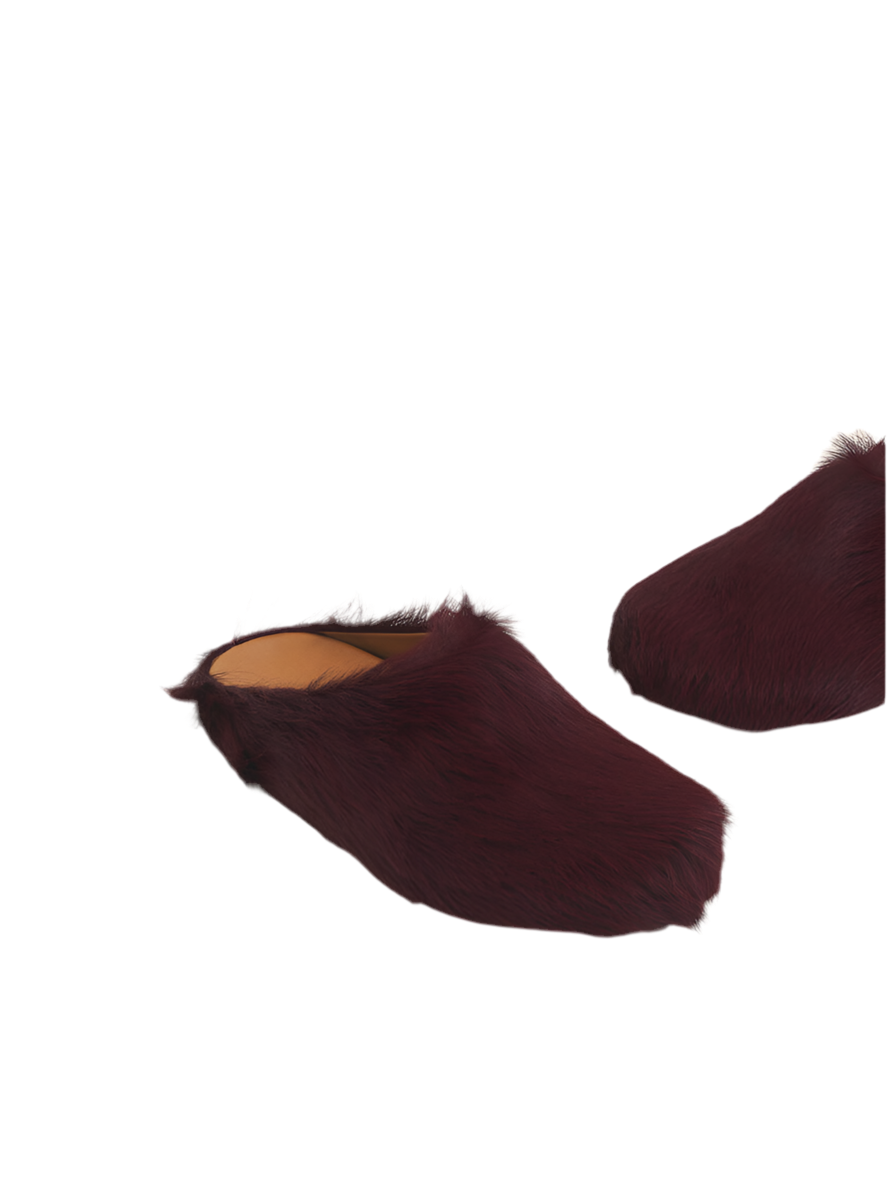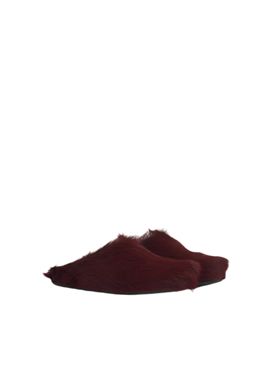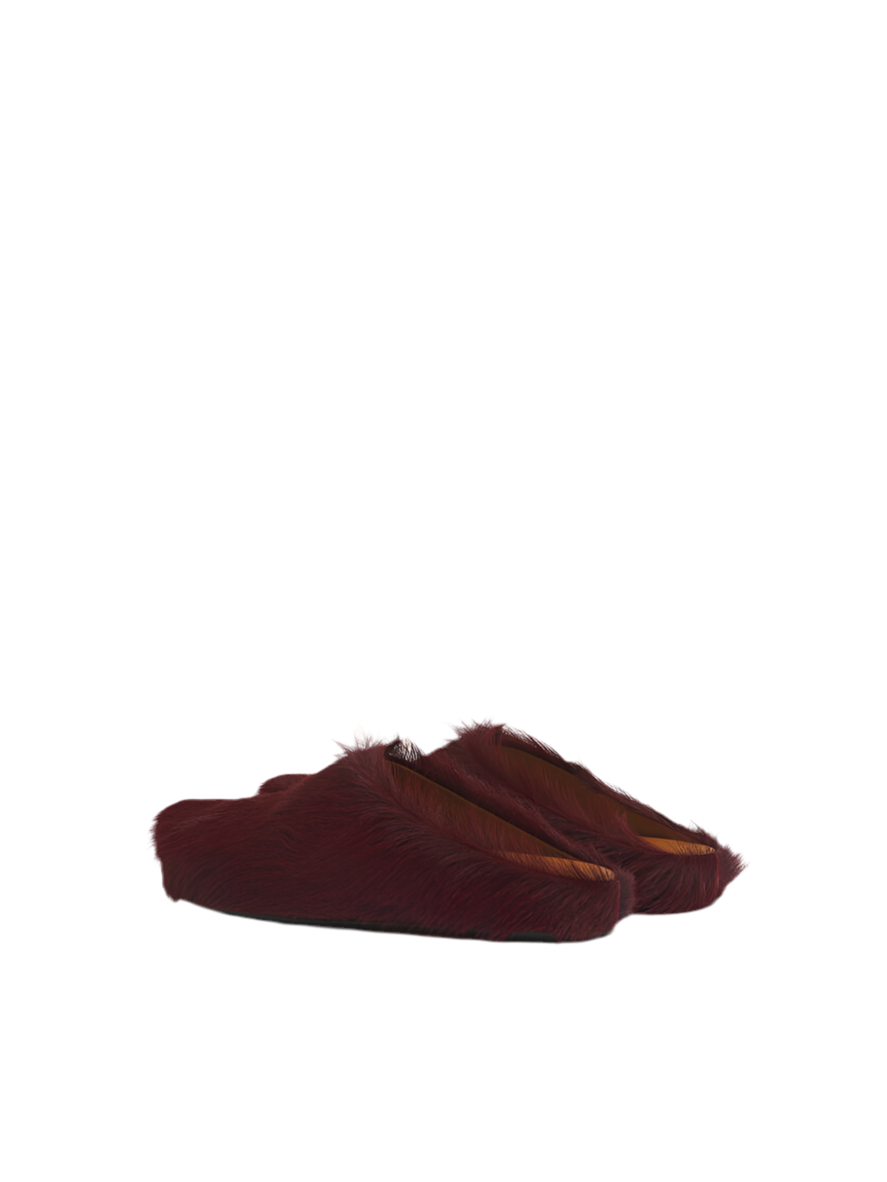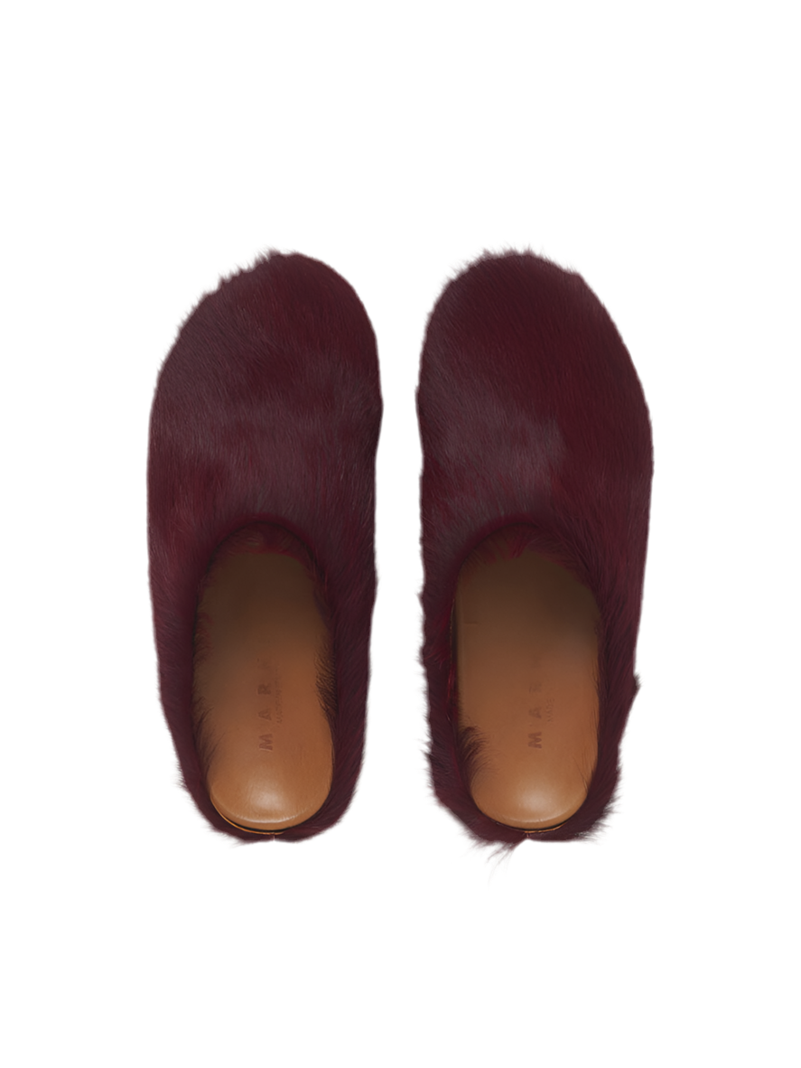 Fussbett Sabot Clog in Red Long Haircalfskin