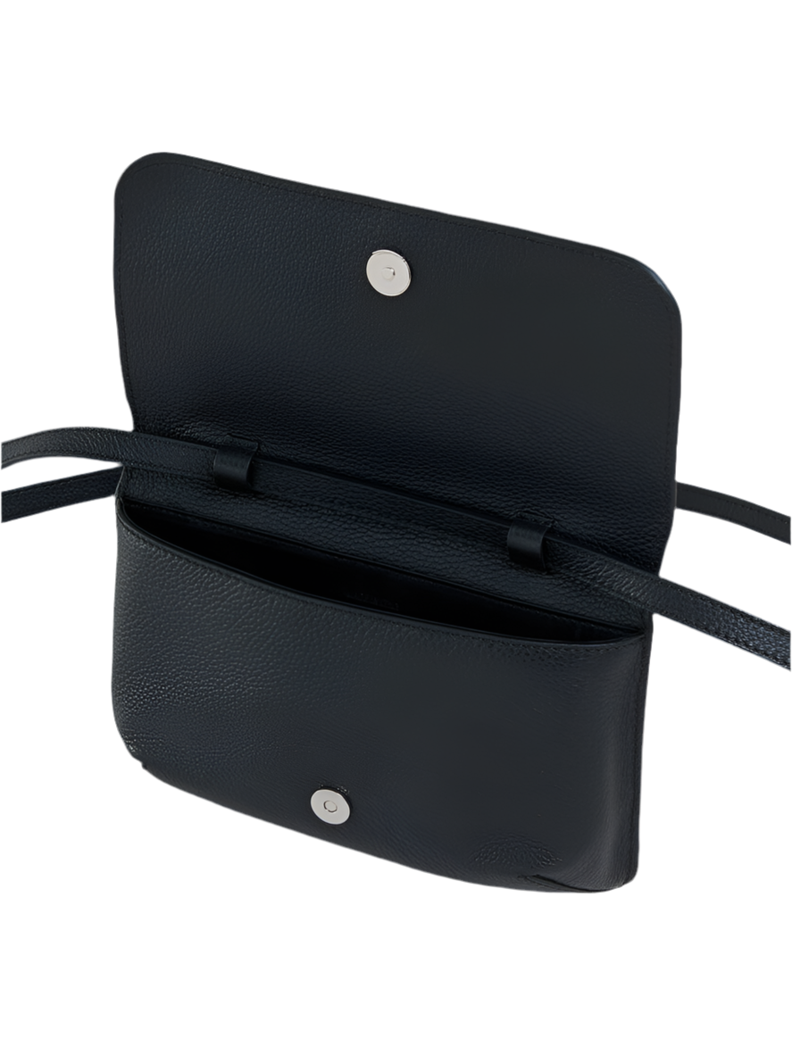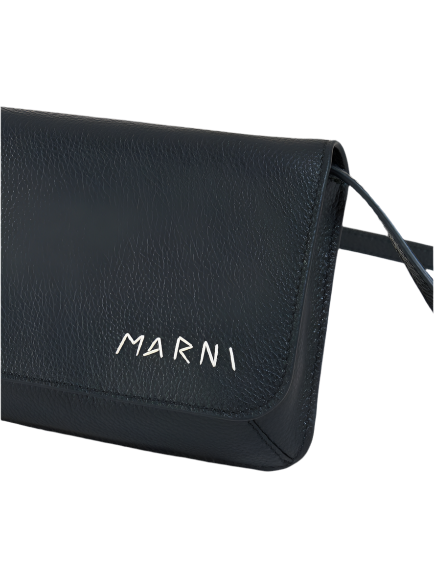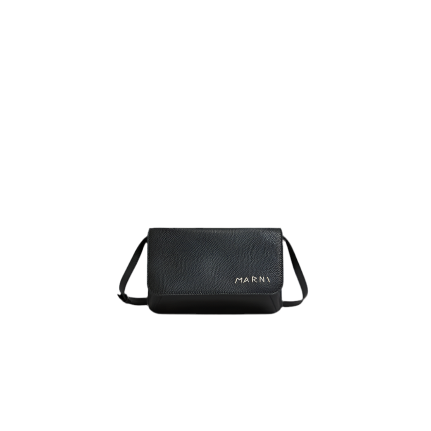 Leather Shoulder Bag with Marni Mending Embroidery in Black
